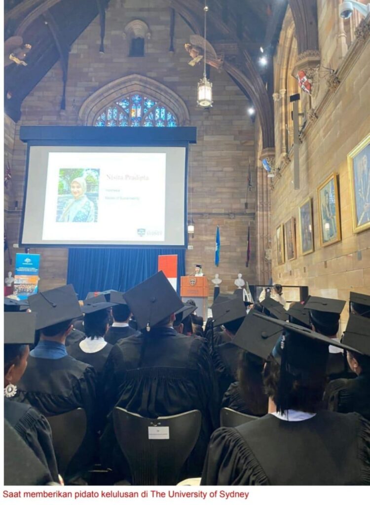 Tak berhenti di situ, setelah bekerja beberapa tahun di bidang perencanaan kota dan organisasi nirlaba, Nisita melanjutkan studi magister di University of Sydney, Australia, mengambil bidang Sustainability Studies. Pilihan ini bukan tanpa alasan. Ia ingin memperdalam pemahaman tentang solusi krisis iklim, transisi energi, dan pembangunan berkelanjutan untuk masa depan Indonesia.