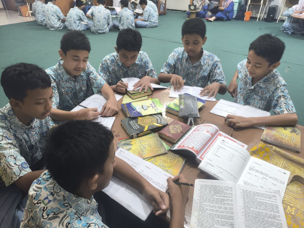 Masa remaja adalah fase transisi yang penuh gejolak. Di usia ini, seorang anak mulai mencari jati diri, mempertanyakan nilai-nilai, dan terpapar pada arus informasi yang begitu deras. Tanpa fondasi spiritual yang kuat, anak remaja mulai kehilangan arah. Di sinilah pentingnya interaksi mendalam dengan Al Qur’an, bukan sekedar membaca huruf nya, melainkan memahami maknanya melalui pembelajaran tarjamah. Di sekolah Al Muslim siswa siswa yang sudah menyelesaikan munaqasyah Al Qur’an akan lanjut ke tahap pembelajaran tarjamah dengan metode buku Al Hisan.