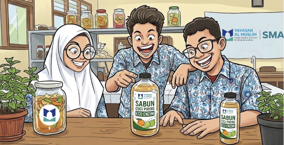 SMA Al Muslim sebagai institusi pendidikan memiliki peran penting dalam menjawab tantangan tersebut melalui pembelajaran yang kontekstual dan bermakna. Pendidikan tidak hanya berfokus pada penyampaian materi, tetapi juga pada pembentukan karakter dan kesadaran lingkungan peserta didik. Salah satu upaya yang dilakukan adalah melalui kegiatan ECOGEN ALMUS (Eco Enzyme Generation SMA Al Muslim), yang mengintegrasikan konsep Biologi dengan praktik pengelolaan limbah organik.