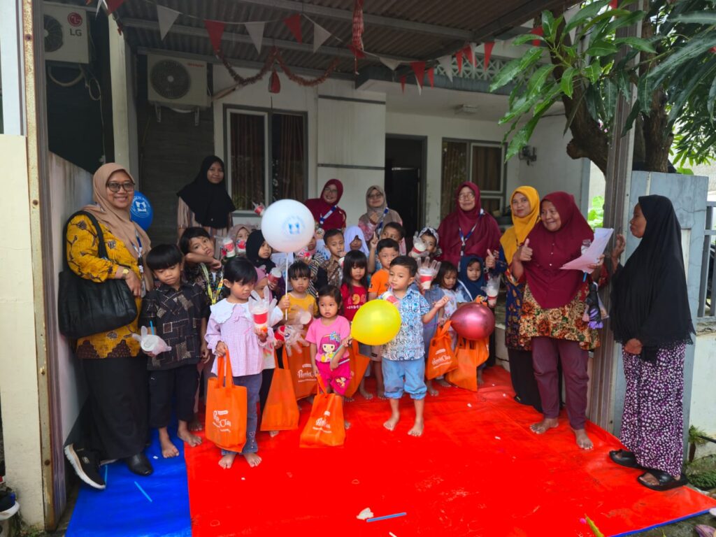 Sejak pagi, suasana area Cluster Jepang tampak semarak. Anak-anak bersama orang tua mereka berdatangan untuk mengikuti rangkaian kegiatan. Tim Posyandu setempat membuka acara dengan penimbangan balita, sebuah agenda rutin yang sangat penting dalam memantau tumbuh kembang anak. Kegiatan ini memberikan manfaat besar bagi orang tua, karena mereka dapat mengetahui kondisi kesehatan putra-putrinya secara langsung sekaligus mendapatkan edukasi seputar pola makan sehat dan perawatan balita.