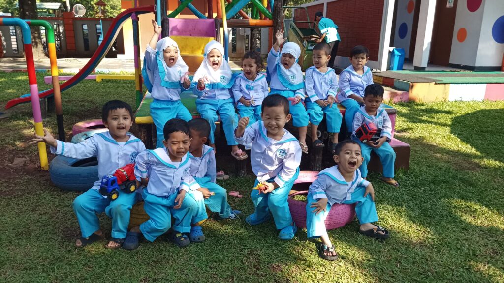 Usia kami sekitar 3-4 tahun kami sekolah di Play Group Al Muslim, Awal masuk sekolah, hati kami sangat berdebar-debar. Semuanya terasa baru, kelas, guru, dan teman-teman yang belum kami kenal. Beberapa dari kami bahkan menggenggam tangan orang tua lebih erat karena takut berpisah bahkan terkadang kami sampai menangis histeris “ mama aku gak mau sekolah aku mau sama mama aja” bahkan kadang kami mencoba kabur dan lari dari gerbang sekolah loh,,.. bu guru dengan dengan semangat mengejar dan menggendong kami kembali ke dalam kelas. karena tidak mau berpisah dengan orang tua kami. Ke esokan harinya kami tetap diantar dengan mama dan ayah kami kesekolah, Bu guru selalu menyambut dengan senyum hangat, mengajak salam salim, lalu bermain bersama, rasa takut itu perlahan hilang. Kami mulai tertawa saat bermain di halaman sekolah , bernyanyi bersama didalam kelas. Hari demi hari kami lewati terkadang kami menangis dan kadang tertawa kami sama-sama memberi semangat dan saling menenangkan bahwa di sekolah sangat menyenangkan dan bu guru selalu mengajak kami bermain,belajar dan mendongengkan kami sebelum tidur, sekolah terasa seperti tempat yang menyenangkan. Sekarang kami sangat happy di sekolah—banyak teman, banyak permainan, dan banyak hal baru yang bisa dipelajari setiap hari kami sangat senang, banyak hal baru yang kami dapat di sekolah.