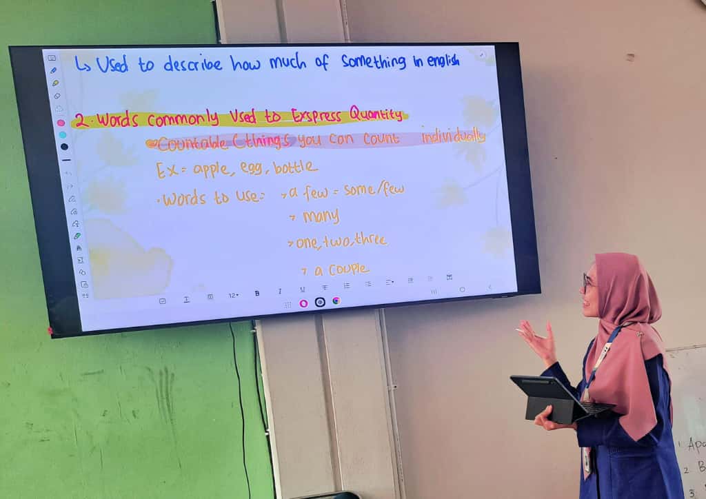 Samsung notes juga berkembang menjadi papan tulis digital yang fleksibel. Guru dapat menjelaskan materi langsung dari tablet, menggambar diagram, menuliskan contoh soal ataupun memberikan umpan balik secara langsung. Ketika tablet dihubungkan dengan Smart TV di kelas, seluruh catatan tersebut dapat ditampilkan, membuat pembelajaran lebih jelas, visual dan mudah diikuti oleh seluruh murid.