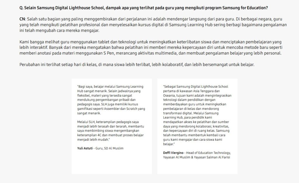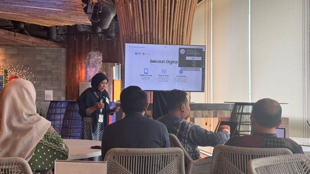 Yayasan Al Muslim memaparkan praktik baik dikelas. Semua perlu perjuangan dan terus rajin mengupgrade kemampuan melalui Samsung Learning Hub saya belajar secara mandiri, bahkan mengikuti kursusnya satu persatu di waktu libur, biasanya di hari minggu atau sepulang dari sekolah. Mengapa saya melakukan hal tersebut, karena banyak fakta dilapangan dan tantangan yang saya hadapi dalam proses pembelajaran di kelas adalah :