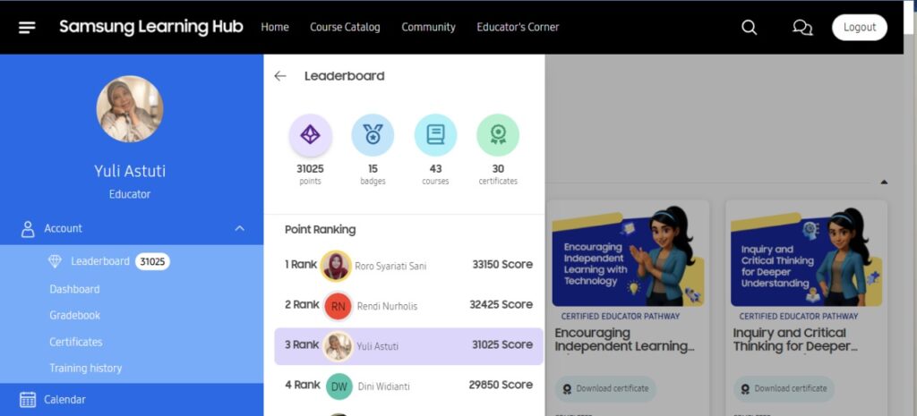 Dari latihan terus menerus karya terbaik ada di Samsung Learning Hub, serta alhamdulillah saya juga dapat dijadikan salah satu narasumber di google pada event earphone for education pada hari Rabu, 15 Oktober 2025 bertempat di Google Indonesia.